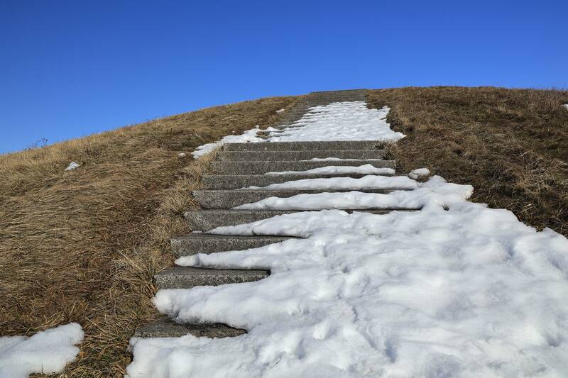 最後は山の反対側に階段がありました。雪が積もっているので慎重に登ります。