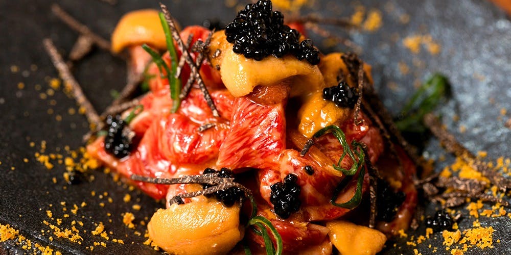 お肉を知り尽くした職人が、生・焼き・灸り・揚げ・湯引き5つの調理法でお肉の美味しさを最大限に引き出す。話題のお肉料理が堪能できる『肉寿司肉和食KINTANコレド室町』