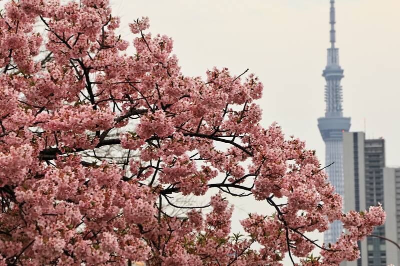 スカイツリーと早咲き桜のスポット