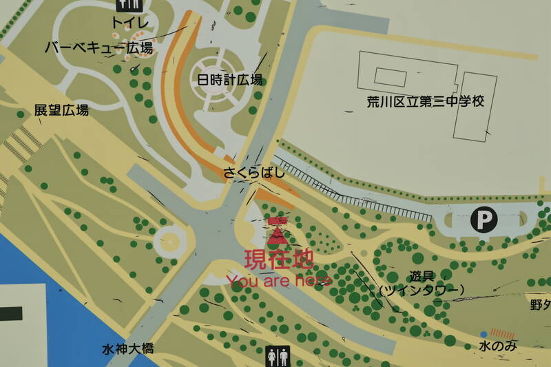 南千住駅から歩いて汐入公園に行きました。ふれあい広場側から入り、テニスコート横を通って、隅田川方面に向かいます。